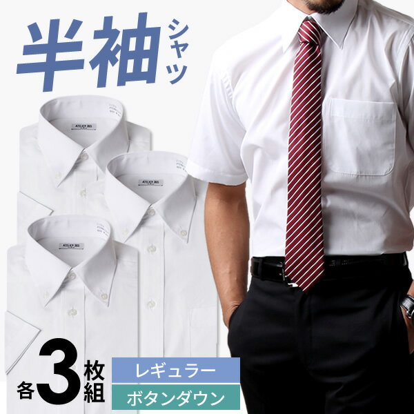 ワイシャツ 3枚組 半袖 白 メンズ 形態安定 イージーケア ボタンダウン メンズ Yシャツ ドレスシャツ ホワイト カッターシャツ 通勤 通学 制服 スリム/ sa01-3set【宅配便のみ】【ct05】
