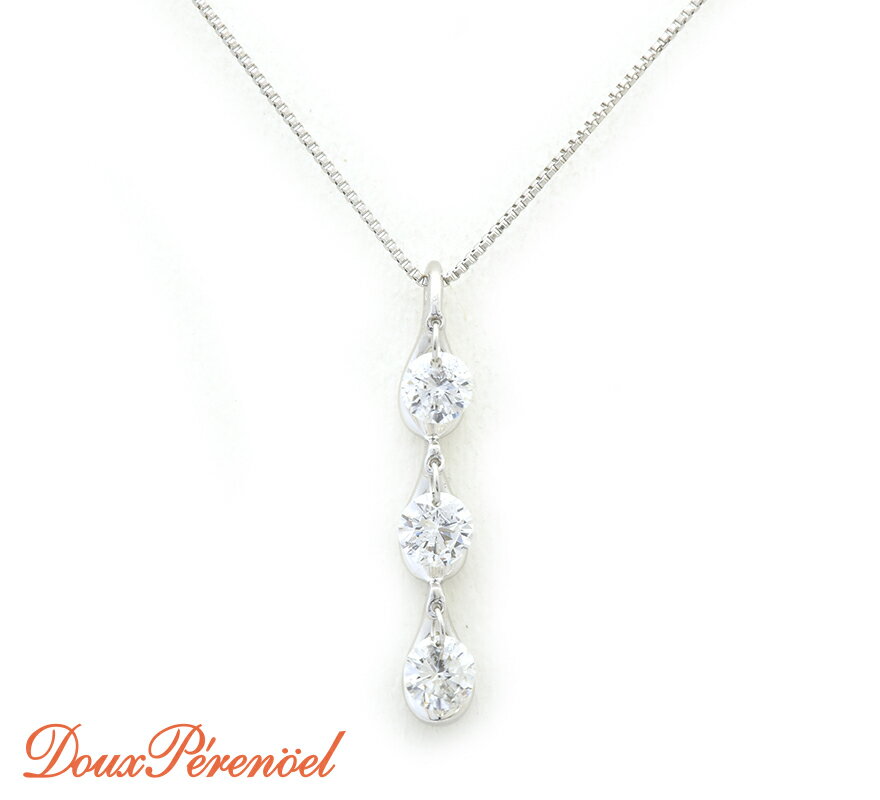探してたのこれでしょ? K18WG ダイヤモンドネックレス トリロジー 45cm(長さ調節可) 0.50ct 18金 ホワイトゴールド 3連ダイヤ シンプル 可愛い 通勤通学 普段使い ビジネス 仕事用 おすすめ ダイヤ ネックレス【返品可】【中古】