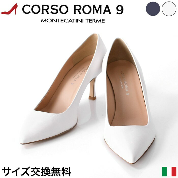 イタリア製 パンプス 本革 ヒール 7cm ポインテッドトゥ フォーマル 通勤 仕事 ビジネス ホワイト 白 ネイビー ブラック レザー 黒 小さいサイズ 22.5cm 大きいサイズ 25.5cm イタリア ブランド コルソローマ 9 CORSO ROMA 9